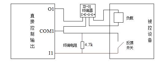 O、COM:組成直接控制輸出端,通過ZD-01終端器與負(fù)載連接,O為輸出端正極,COM為輸出端負(fù)極,啟動后O與COM之間輸出DC24V。