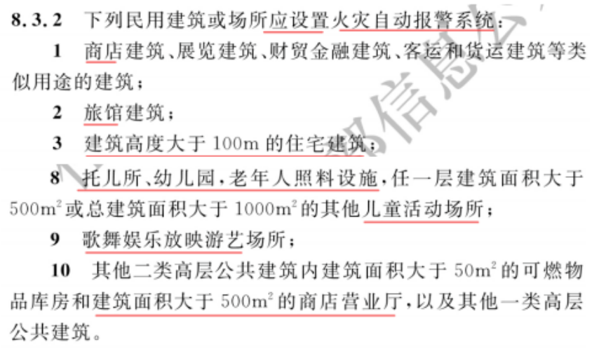 哪些場所可采用“區(qū)域報警系統(tǒng)”呢?可參照GB 55037-2022《建筑防火通用規(guī)范》的8.3.2條規(guī)定,如建筑面積大于100m2的商店、客房多于15間的旅館、托兒所、幼兒園、歌舞娛樂放映游藝等小型場所,但需要注意前提還是:沒有聯(lián)動(模塊、消火栓按鈕)。