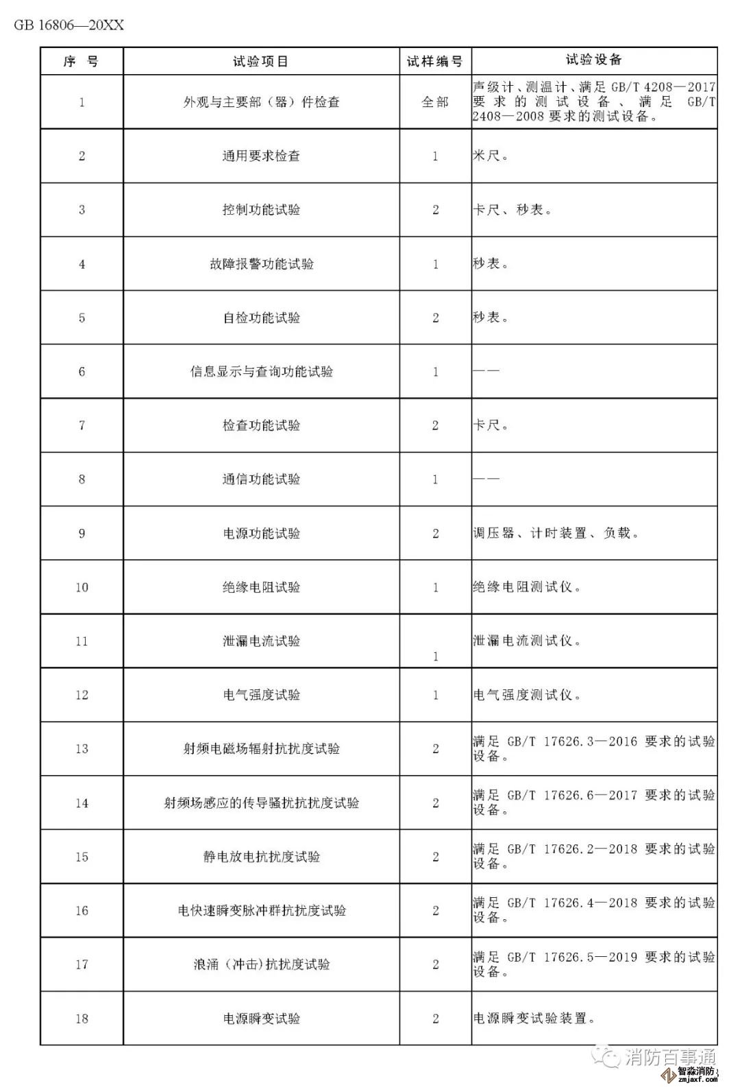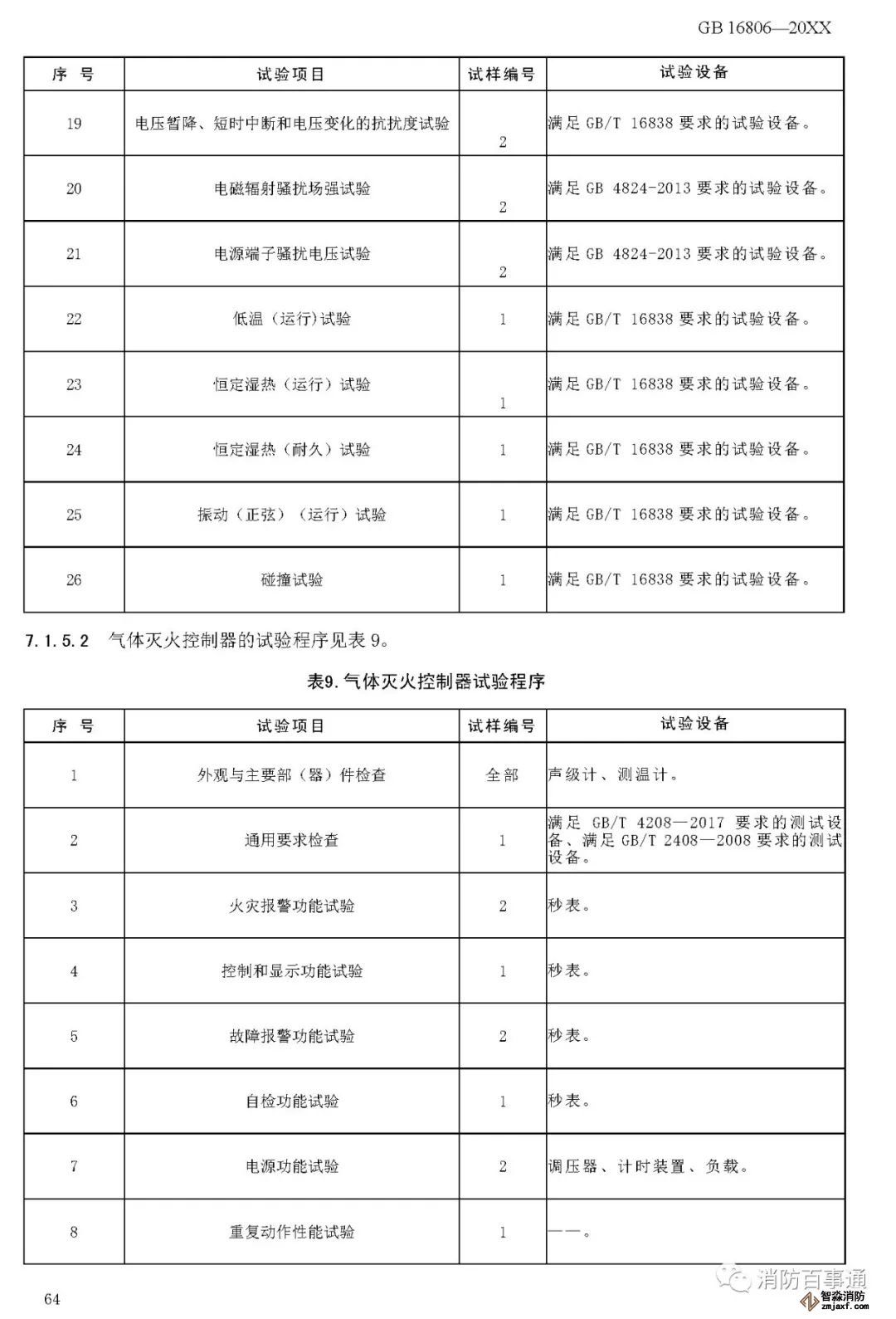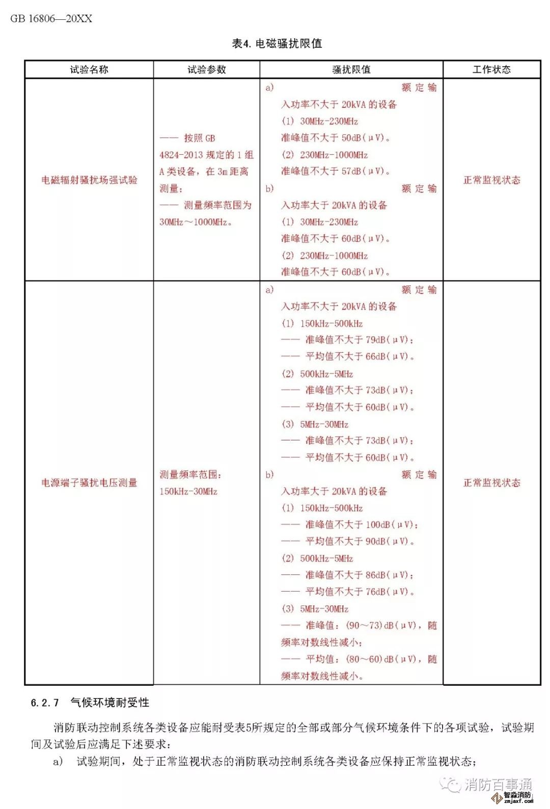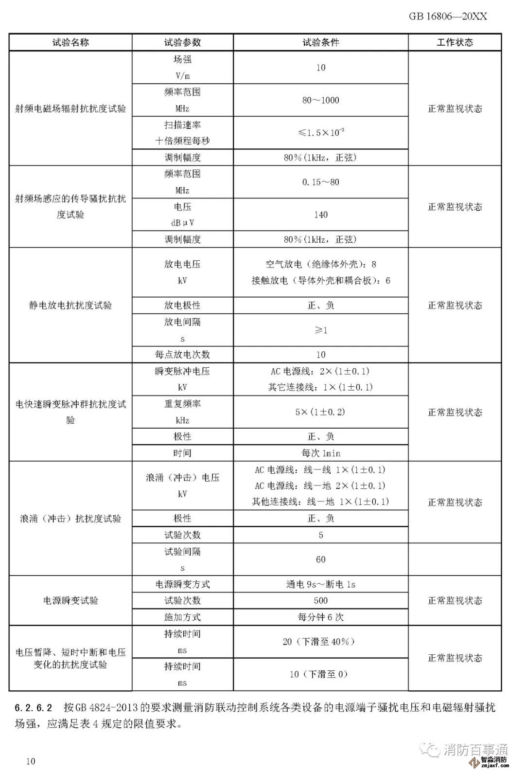 00007——增加了以組件形式出廠的消防聯(lián)動控制系統(tǒng)各類設(shè)備的電磁兼容性能要求(6.2.6);