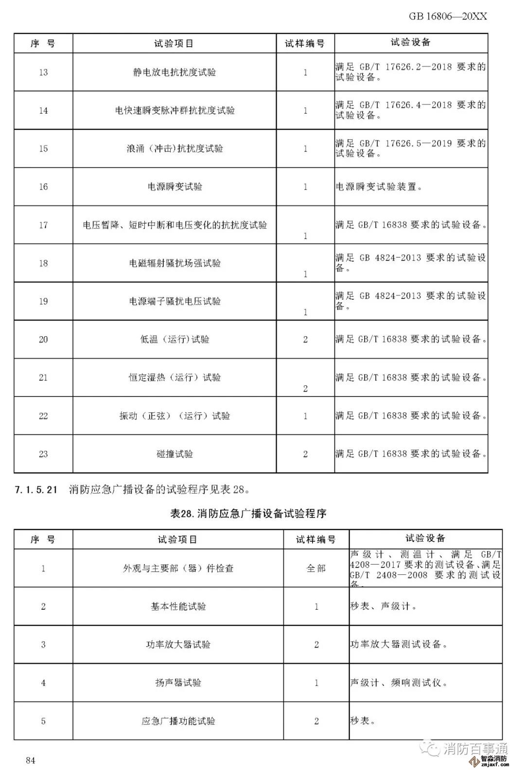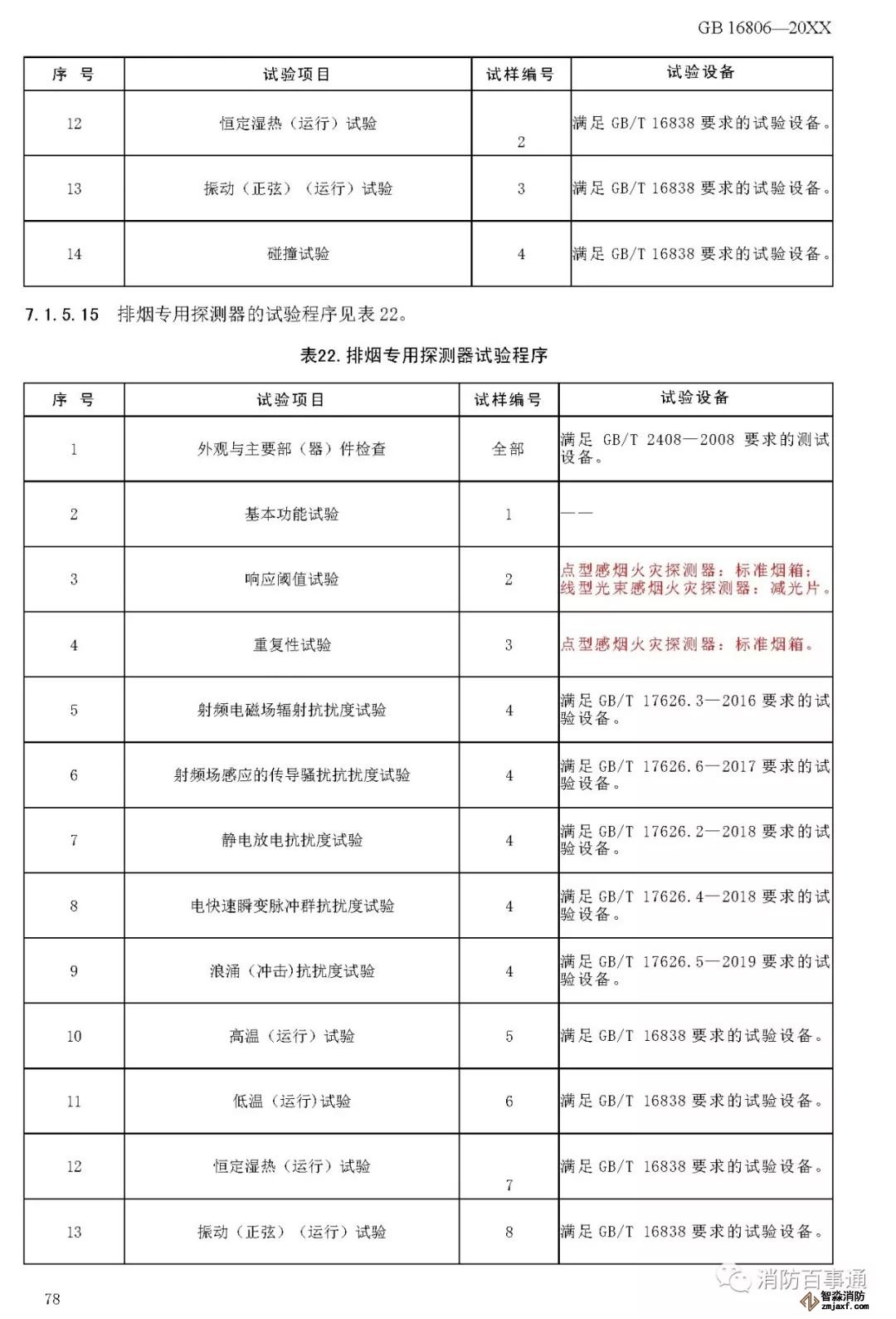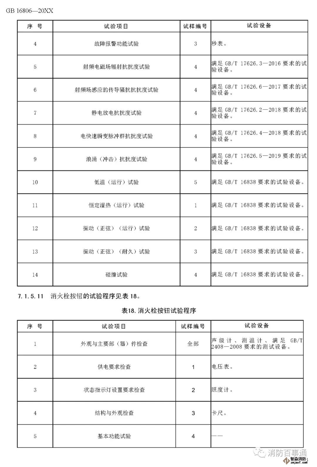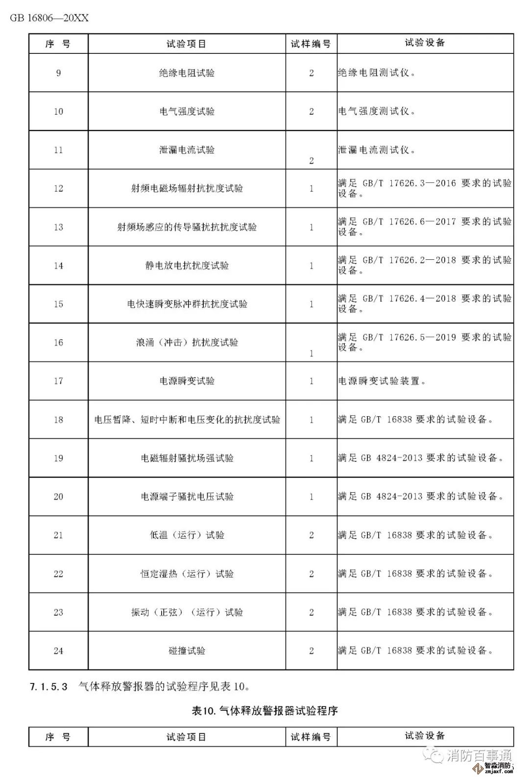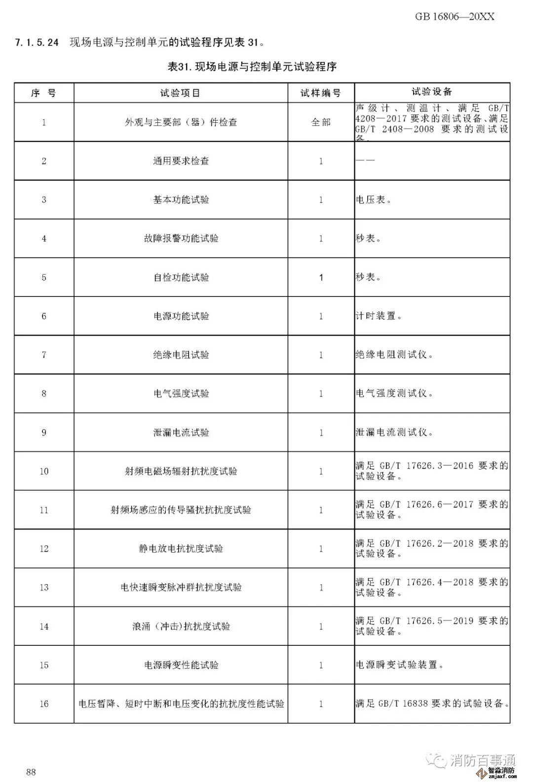 00007——增加了以組件形式出廠的消防聯(lián)動控制系統(tǒng)各類設(shè)備的電磁兼容性能要求(6.2.6);