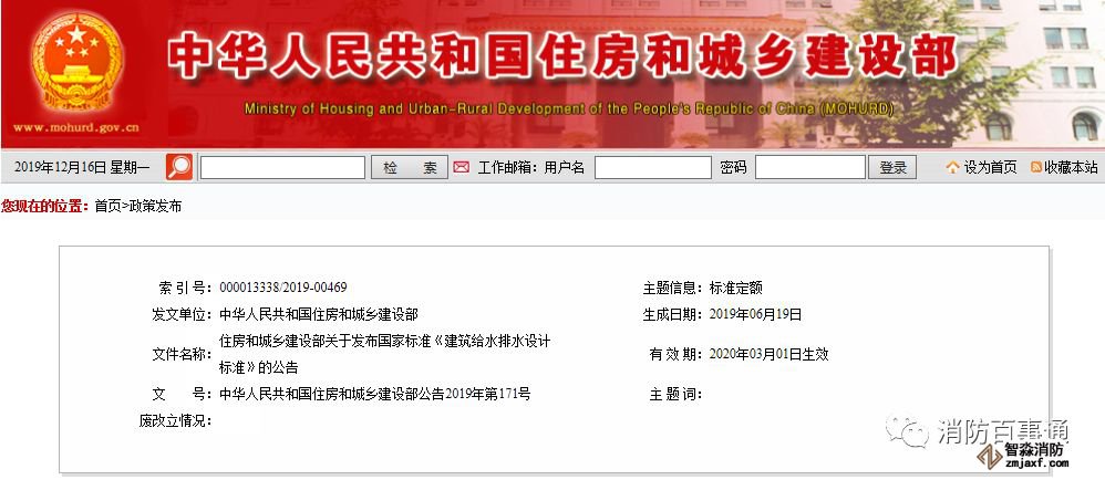 國(guó)家標(biāo)準(zhǔn)《建筑給水排水設(shè)計(jì)標(biāo)準(zhǔn)》的公告