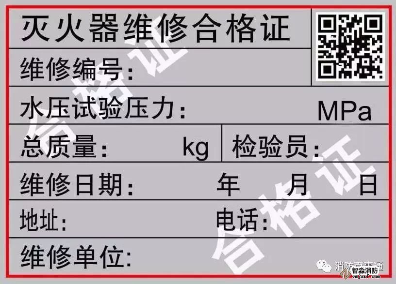 圖1 滅火器維修合格證式樣