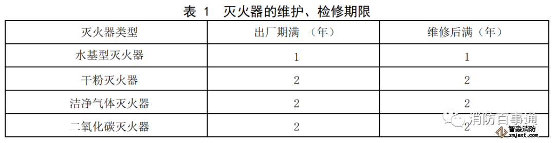 7.3.2 滅火器維護(hù)、檢修期限應(yīng)符合表1的規(guī)定。
