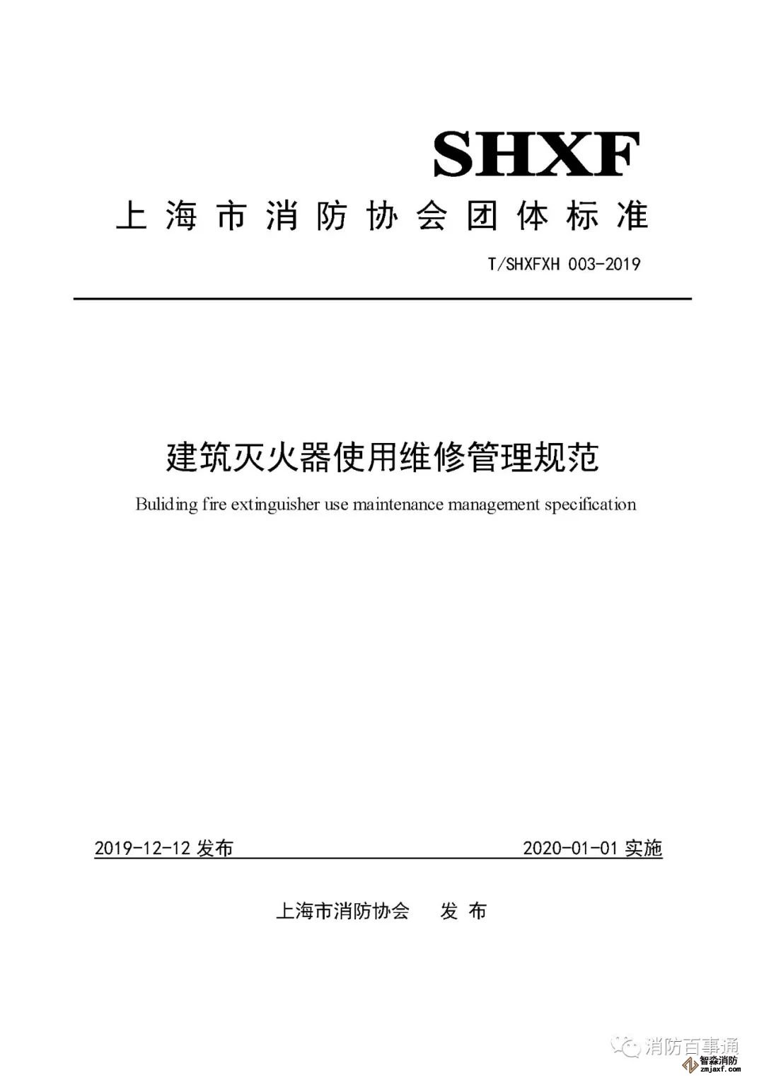 近日,上海市消防協(xié)會(huì)關(guān)于發(fā)布團(tuán)體標(biāo)準(zhǔn)《建筑滅火器使用維修管理規(guī)范》T/SHXFXH 003-2019。