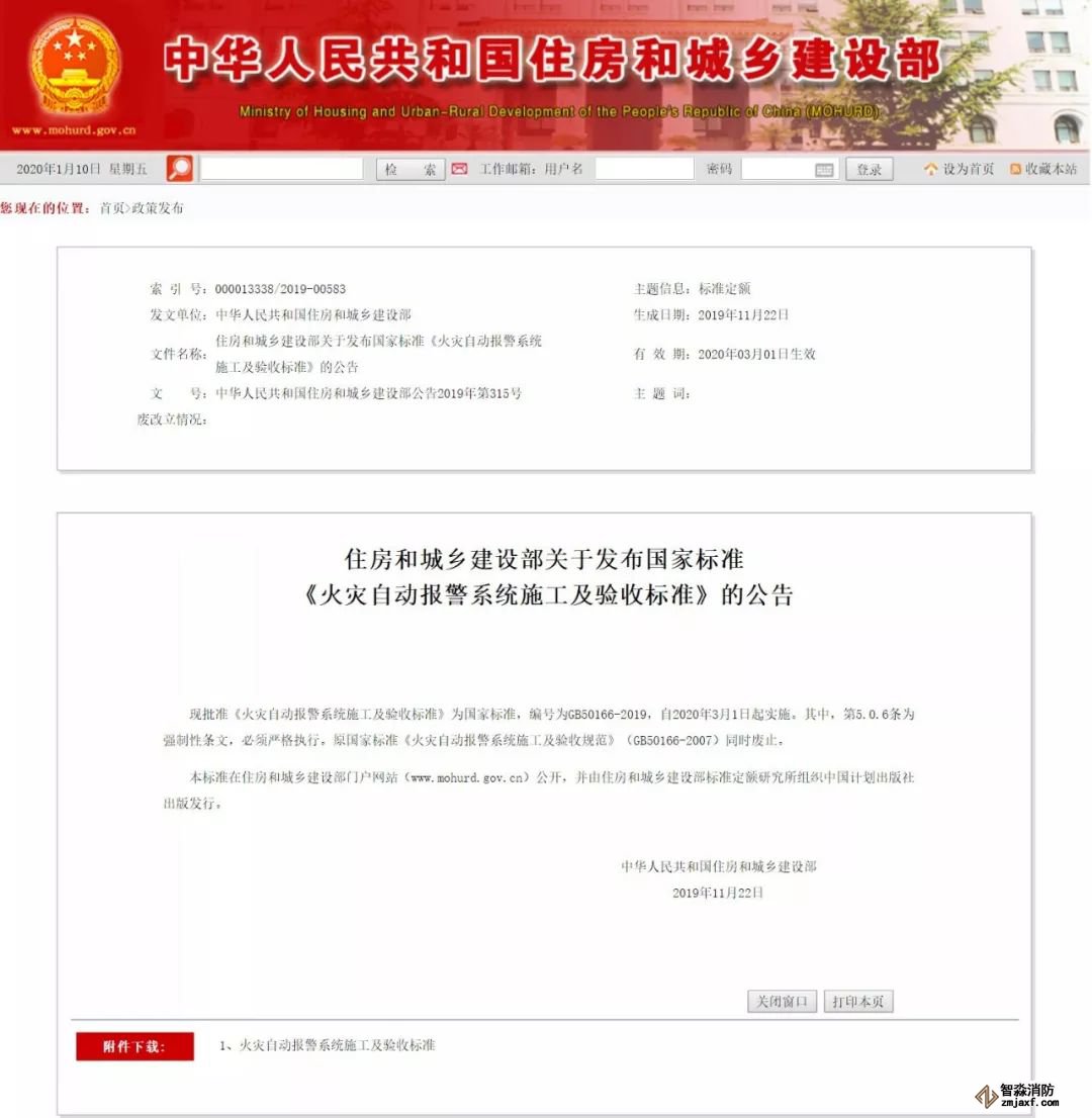 近日,住建部公布了GB50166-2019《火災(zāi)自動(dòng)報(bào)警系統(tǒng)施工及驗(yàn)收標(biāo)準(zhǔn)》,自2020年3月1日起實(shí)施。
