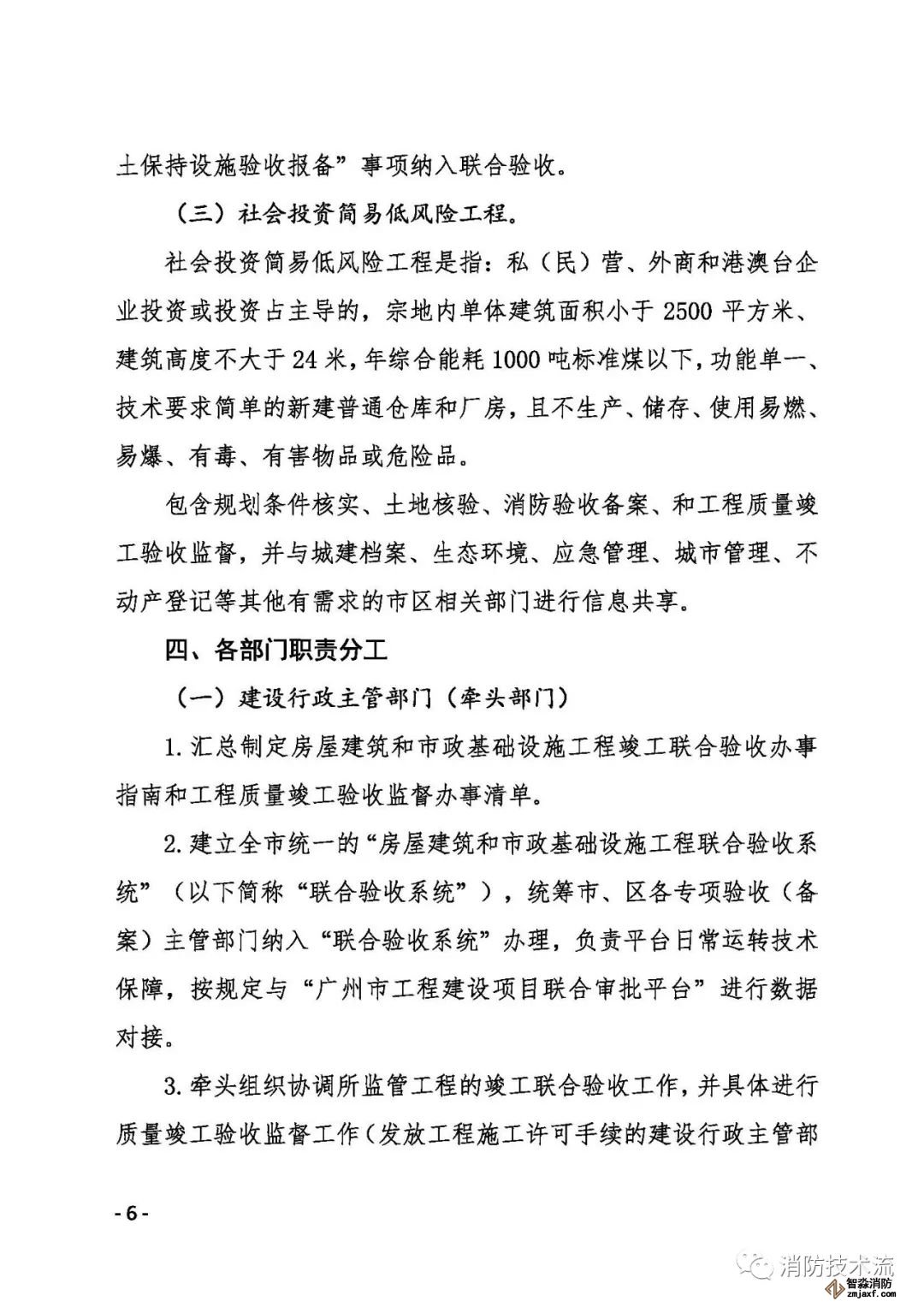 為進(jìn)一步優(yōu)化我市營(yíng)商環(huán)境,根據(jù)《廣州市工程建設(shè)項(xiàng)目審批制度改革試點(diǎn)工作領(lǐng)導(dǎo)小組辦公室關(guān)于印發(fā)進(jìn)一步優(yōu)化社會(huì)投資簡(jiǎn)易低風(fēng)險(xiǎn)工程建設(shè)項(xiàng)目審批服務(wù)實(shí)施意見(jiàn)(試行)的通知》要求,增加社會(huì)投資簡(jiǎn)易低風(fēng)險(xiǎn)工程分類,嚴(yán)格落實(shí)聯(lián)合驗(yàn)收制度,不得要求建設(shè)單位就規(guī)劃(含土地核驗(yàn))、工程質(zhì)量驗(yàn)收監(jiān)督、消防備案等事項(xiàng)單獨(dú)申請(qǐng)驗(yàn)收。