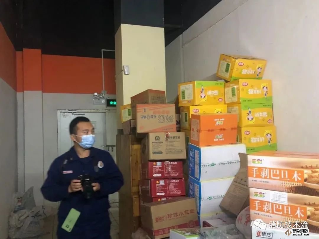 存在問題:1、疏散通道被貨物占用;2、南側(cè)疏散門外1.4m范圍內(nèi)設(shè)置踏步;3、倉庫未設(shè)置乙級防火門。