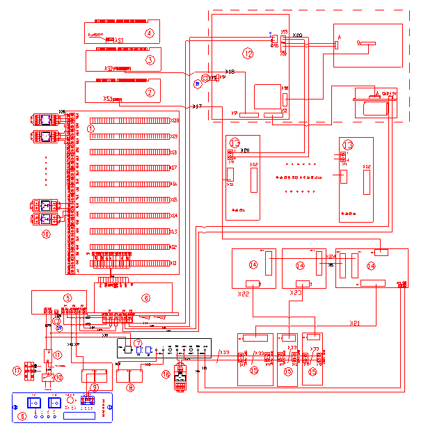 海灣消防JB-QG/QT-GST5000報(bào)警主機(jī)柜式和琴臺式整機(jī)內(nèi)部維修接線示意圖