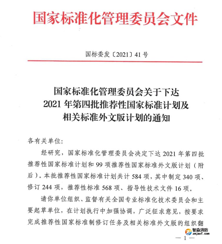 日前,國家標(biāo)準(zhǔn)化管理委員會發(fā)布2021年第四批推薦性國家標(biāo)準(zhǔn)計劃及相關(guān)標(biāo)準(zhǔn)外文版計劃的通知,本批推薦性國家標(biāo)準(zhǔn)計劃共計584項(xiàng),其中制定340項(xiàng)、修訂244項(xiàng),推薦性標(biāo)準(zhǔn)568項(xiàng)、指導(dǎo)性技術(shù)文件16項(xiàng)。涉及《應(yīng)急照明》、《危險化學(xué)品作業(yè)場所火災(zāi)自動報警系統(tǒng)特殊要求第 1 部分:火災(zāi)探測報警系統(tǒng)》、《危險化學(xué)品作業(yè)場所火災(zāi)自動報警系統(tǒng)特殊要求第 2 部分:消防應(yīng)急照明與疏散指示系統(tǒng)》、《危險化學(xué)品作業(yè)場所火災(zāi)自動報警系統(tǒng)特殊要求第 3 部分:可燃?xì)怏w探測報警系統(tǒng)》等推薦性國家標(biāo)準(zhǔn),具體如下: