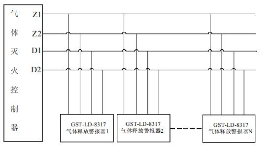 布線要求:信號(hào)總線Z1、Z2采用阻燃RVS雙絞線,截面積≥1。0mm2;電源線D1、D2采用阻燃BV線,截面積≥1。5mm2。