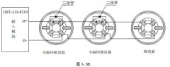 GST-LD-8319輸入模塊與非編碼探測器串聯(lián)連接時,探測器的底座上應接二極管 1N5819,且輸出回路終端必須接GST-LD-8320或GST-LD-8320A終端器,終端器可當探測器底座使用,即在此終端器上可安裝非編碼探測器,其系統(tǒng)構成圖如圖1- 36: