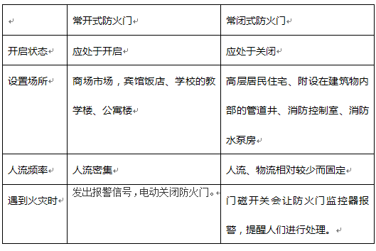 防火門常開(kāi)式和常閉式設(shè)置上的區(qū)別