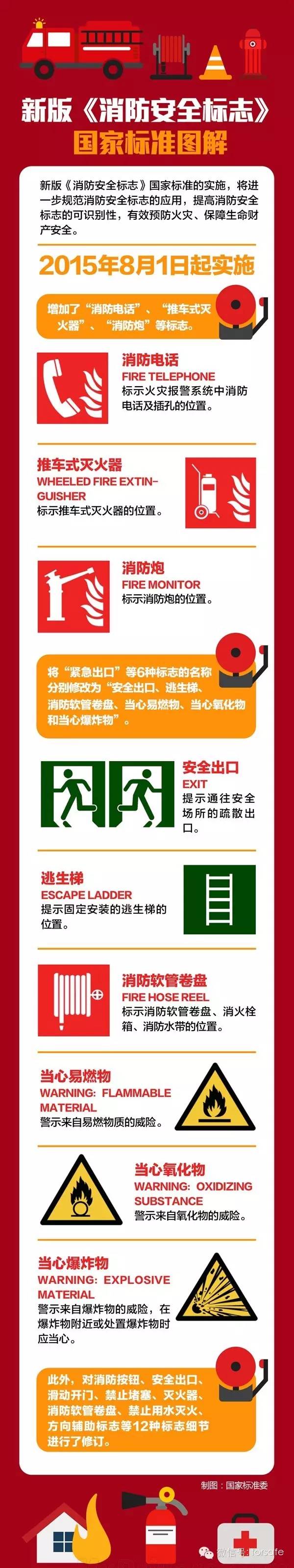 據(jù)從國家標準委獲悉,新修訂的GB13495.1—2015《消防安全標志第1部分:標志》國家標準將于今年8月1日起正式實施。