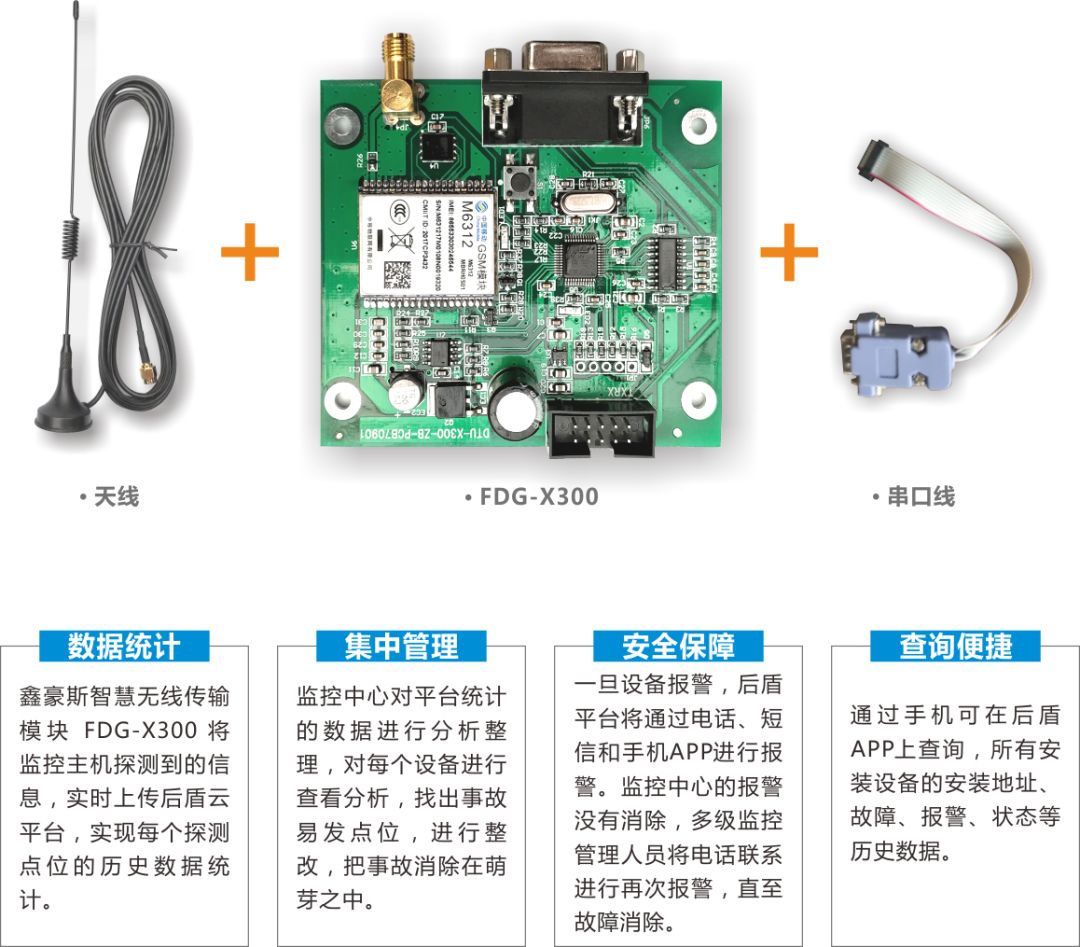 FDG-X300智慧無(wú)線傳輸模塊,通過(guò)RS232串口對(duì)接電氣火災(zāi)監(jiān)控主機(jī),氣體探測(cè)監(jiān)控主機(jī),消防電源監(jiān)控主機(jī),防火門(mén)監(jiān)控主機(jī)。采集主機(jī)探測(cè)器信息上傳平臺(tái),實(shí)現(xiàn)對(duì)大量探測(cè)器信息的監(jiān)管。模塊安裝簡(jiǎn)單、方便,同時(shí)可進(jìn)行遠(yuǎn)程升級(jí)。