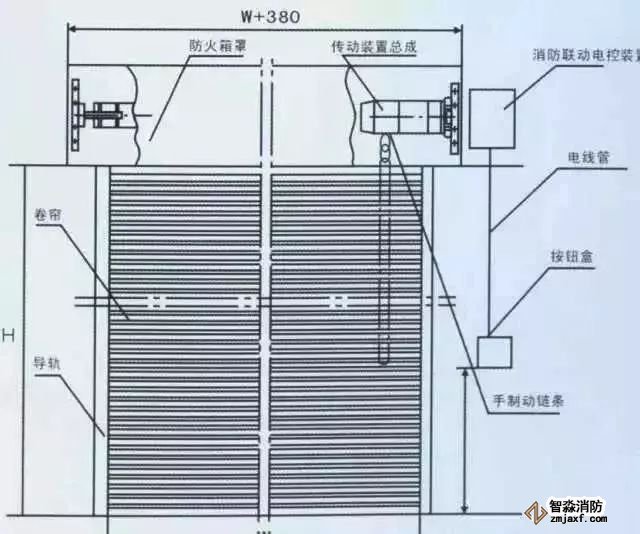防火卷簾簾面通過(guò)傳動(dòng)裝置和控制系統(tǒng)達(dá)到卷簾的升降;從而起到防火、隔火作用。