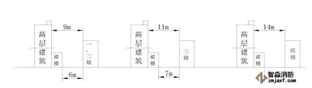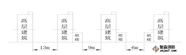 (b)高層民用建筑與普通建筑之間間距