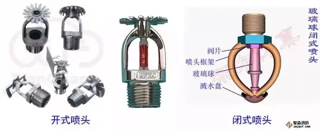 閉式(噴頭噴口由熱敏元件組成,達(dá)到一定溫度后自動(dòng)開(kāi)啟,如玻璃球爆炸、易熔合金脫離。)