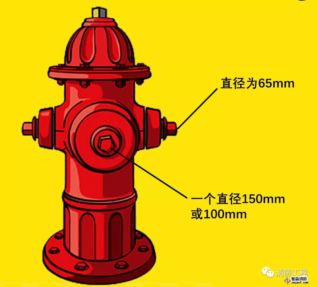 (1) 室外地上式:一個直徑為150mm或100mm和兩個直徑為65mm的栓口;