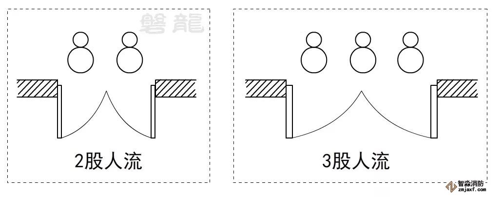 通常認(rèn)為,最有效的疏散方式,是以單股或多股人流的形式有序進行,觀眾廳等人員密集場所的疏散門,以及學(xué)校場所的疏散樓梯等,其疏散凈寬度應(yīng)為人流股數(shù)的整數(shù)倍,以確保最高的疏散效率,防止踩踏事故發(fā)生。