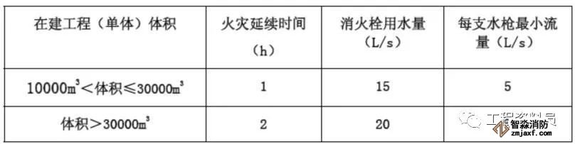 2)、臨時消防用水量應(yīng)為臨時室外消防用水量與臨時室內(nèi)消防用水量之和。