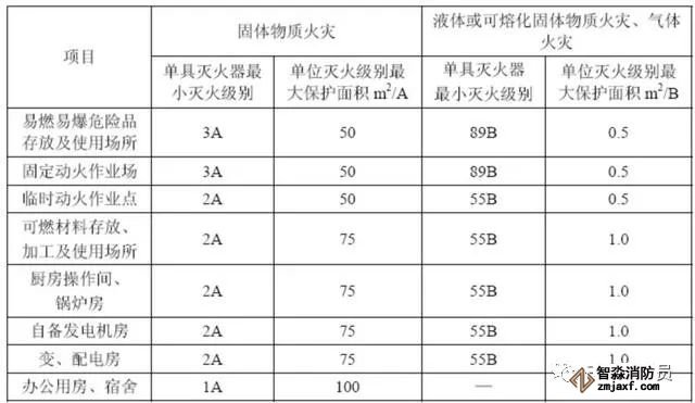 4)、滅火器的最大保護距離應(yīng)符合表5.2.2-2 的規(guī)定。