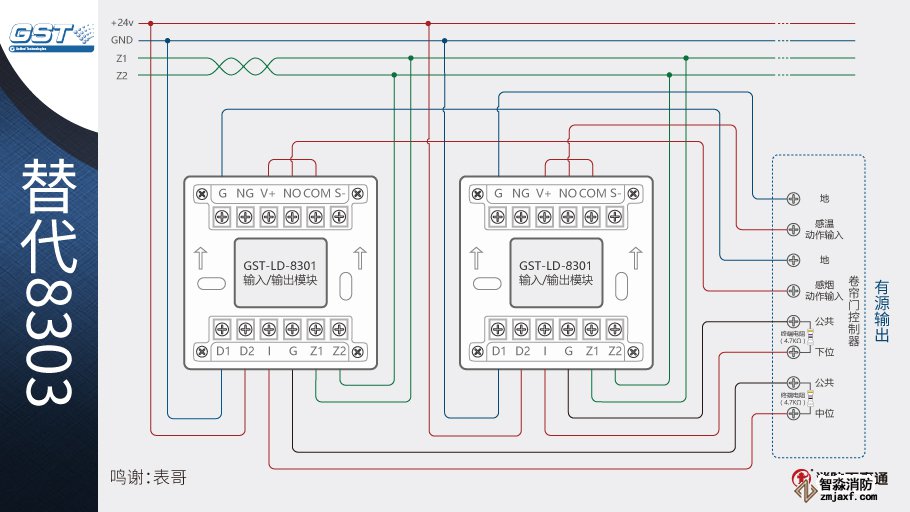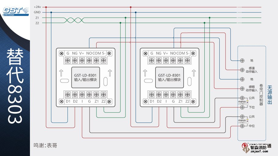 1、海灣8301模塊可以替代海灣的8303模塊控制防火卷簾,兩個(gè)8301模塊相當(dāng)于1個(gè)8303模塊。
