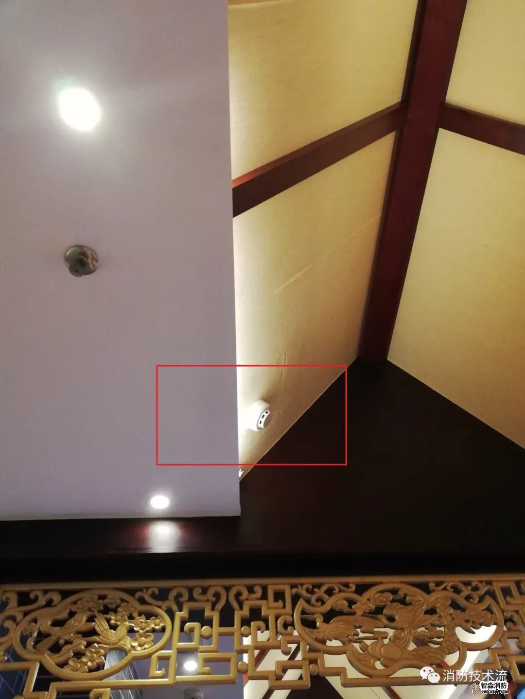 很少見到像我這樣安裝的這么有個性的煙感探測器吧?歪歪的,斜斜的。然而我卻違反了《火災(zāi)自動報警系統(tǒng)設(shè)計規(guī)范》第6.2.11條 點型探測器宜水平安裝,當傾斜安裝時,傾斜角不應(yīng)大于 45°。