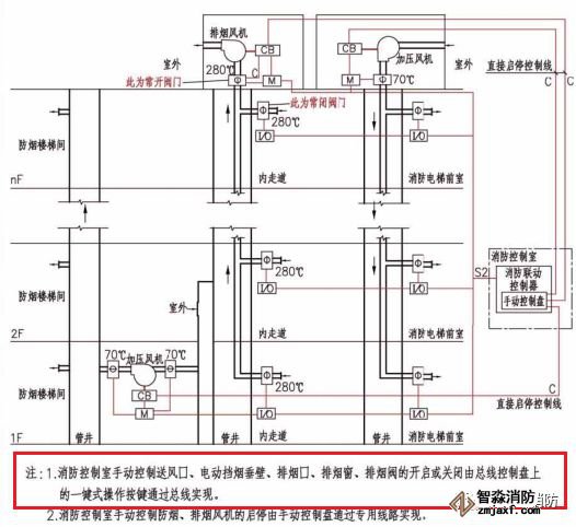 1 消防水泵/防排煙風機是要求在消防控制室硬線手動控制的(通過直接控制盤實現),這個非常明確就不多說了。