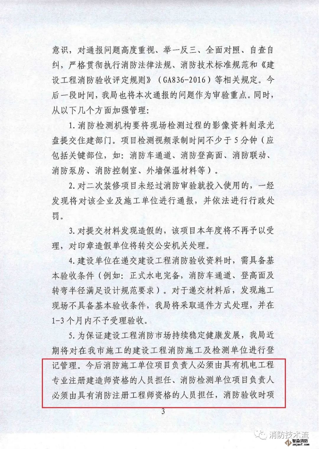 山東省煙臺市住房和城鄉(xiāng)建設局2月10日發(fā)布《關于我市建設工程消防設計審查和驗收中存在問題的通報》,明確指出:今后消防施工單位項目負責人必須由具有機電工程專業(yè)注冊建造師資格的人員擔任、消防檢測單位項目負責人必須由具有消防注冊工程師資格的人員擔任,消防驗收時項目負責人必須到場。