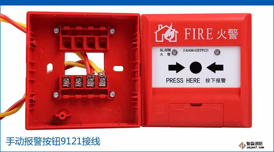 手動報警按鈕9121,不帶電話插孔,只需接信號總線。信號線一組來自上面感煙火災(zāi)探測器,一組接到我們今天的主角輸入輸出模塊8301上。