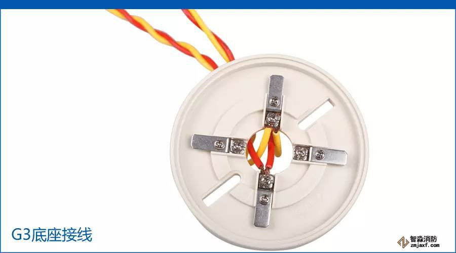 感煙火災(zāi)探測器G3的接線表哥不詳述了,接相對的兩個端子。圖中一路接到控制器,一路是接到手動報警按鈕9121上。海灣總線無極性,翻譯成人話也就是不分正反。如上圖中的一組紅黃兩根線,把紅色和黃色對調(diào)也是沒有問題的。