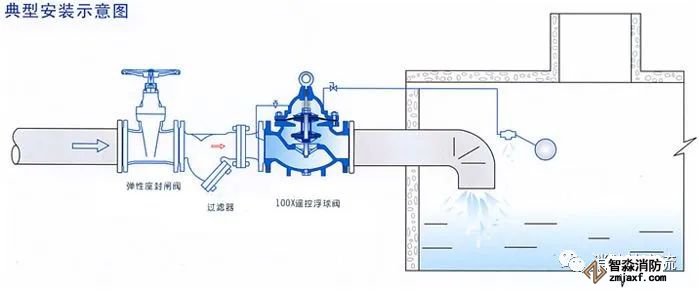 遙控浮球閥:應(yīng)用于高位消防水箱、消防水池的進水口處,當水位達到設(shè)定的高度時,王閥由浮球?qū)чy控制關(guān)閉進水口停止供水:當水位下降后,主閥由浮球開關(guān)控制打開進水口向水池汪水,實現(xiàn)自動補水。