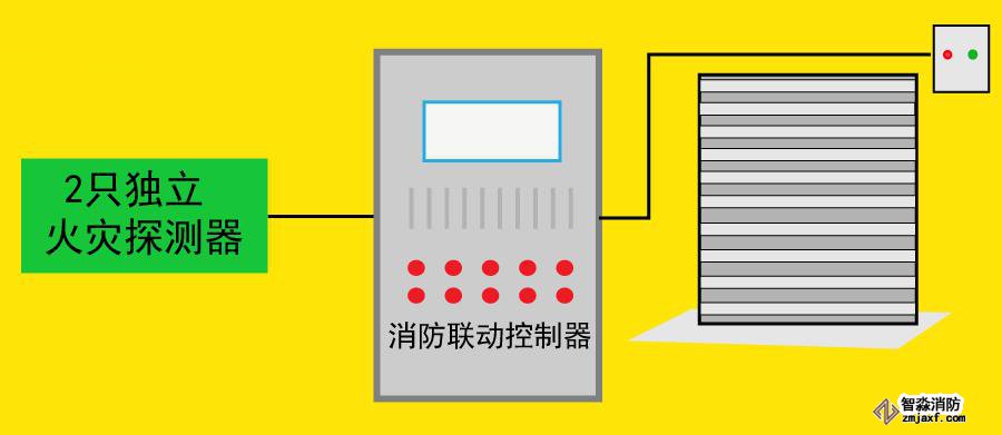 應由防火卷簾所在防火分區(qū)內(nèi)任兩只獨立的火災探測器的報警信號,作為防火卷簾下降的聯(lián)動觸發(fā)信號,并應聯(lián)動控制防火卷簾直接下降到樓板面。