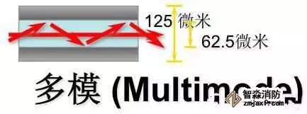 在一定的工作波長下(850nm/1300nm),有多個模式在光纖中傳輸,這種光纖稱之為多模光纖。由于色散或像差,因此,這種光纖的傳輸性能較差,頻帶較窄,傳輸容量也比較小,距離比較短,有色散。發(fā)光二極管可作為光源。