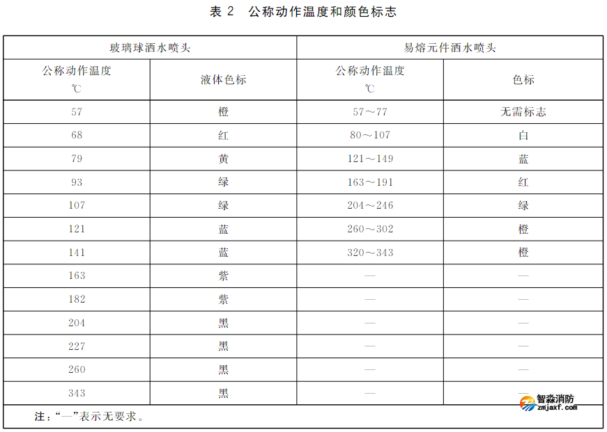 公稱動作溫度和顏色標(biāo)志
