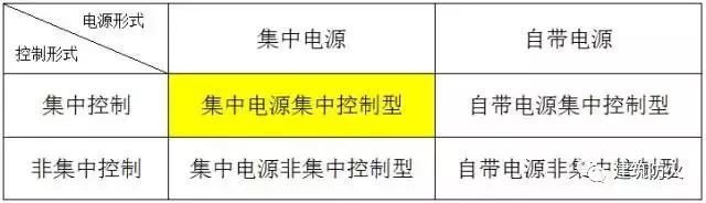 消防應急照明和疏散指示系統(tǒng)按控制形式分為集中控制和非集中控制,應急電源的實現(xiàn)方式有集中電源和非集中電源。所以就有4類系統(tǒng)形式: