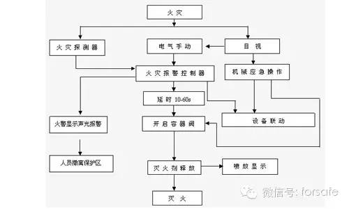 海灣氣體滅火系統(tǒng)同時(shí)具有自動(dòng)控制,手動(dòng)控制和機(jī)械應(yīng)急操作三種啟動(dòng)方式,操作程序如下: