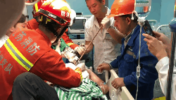 消防人員到場時,受傷人員已經(jīng)被120救護車抬上車送往第一人民醫(yī)院,消防救援人員又飛馳趕到醫(yī)院急診協(xié)助處置。