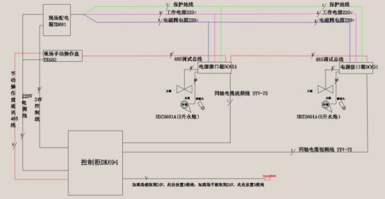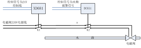 自動控制功能是通過控制滅火控制器24V控制線完成,24V控制線通過現(xiàn)場配電箱XD681對電磁閥電源線進(jìn)行控制而實(shí)現(xiàn)對電磁閥的控制。