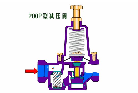 安裝于管路中,主要穩(wěn)定出口壓在設(shè)定范圍,保證出口壓力不因進(jìn)口壓力的變化而變化,當(dāng)出口壓力低于設(shè)定值時(shí),閥瓣在彈簧力的作用打開(kāi),水流通過(guò),當(dāng)出口壓力升至設(shè)定值時(shí),出口壓直接傳遞于膜片下方,與彈簧形成對(duì)抗使閥瓣關(guān)閉,切斷通水。