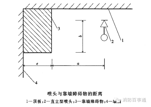 5、直立型、下垂型噴頭與靠墻障礙物的距離,應(yīng)符合下列規(guī)定: