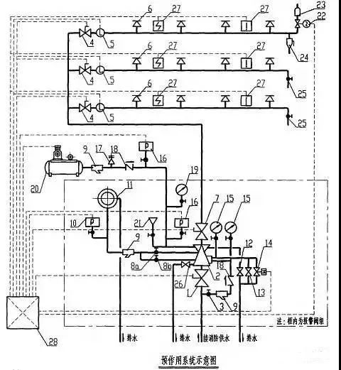 3.對于閥后為空管的預(yù)作用系統(tǒng)可以直接采用雨淋閥作為預(yù)作用報警閥,對于充氣的預(yù)作用系統(tǒng)同時還應(yīng)采取加濕式報警閥、止回閥等防止氣體滲漏的措施。