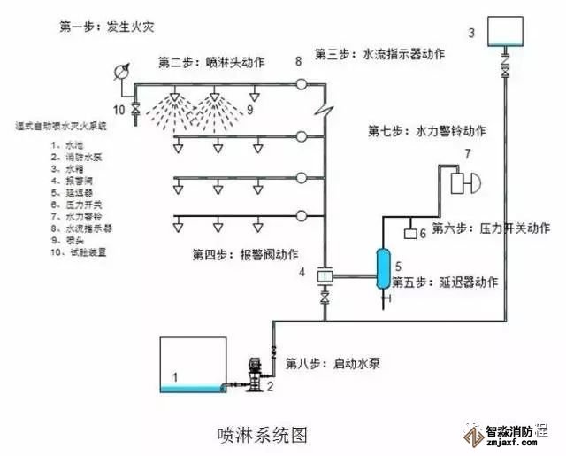 2. 濕式報警閥與水流指示有些不同,如果噴淋管道中如果水在流動,管道原有的靜壓會發(fā)生變化,會激發(fā)水力警鈴報警(它的原理可以參看一些閥門說明書),且壓力開關(guān)動作,從而來啟動噴淋水泵。