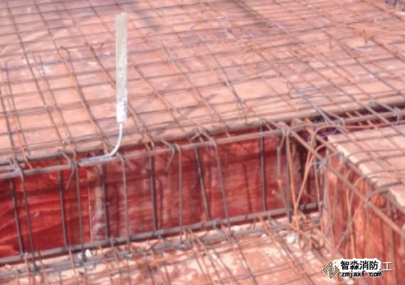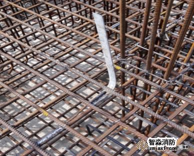 管線與底筋用鐵絲綁扎牢固,避免線管移位損壞,PVC管路固定點的間距為不大于1m,距端頭、彎曲中點不大于500mm。